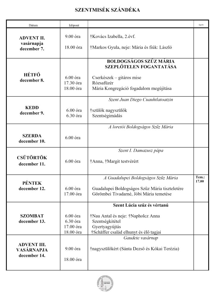 • Miserend – december 7 – 14.
