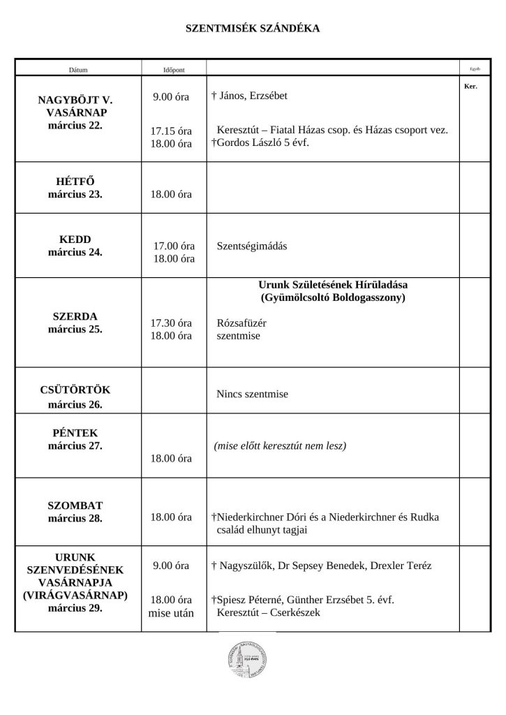• Miserend – március 22 – 29.